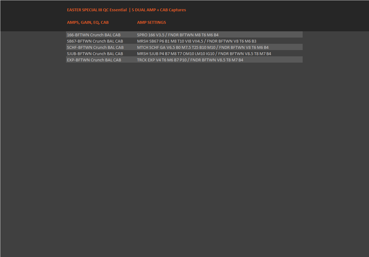 As a way to greet the coming spring and celebrate Easter, we made something very special for you. Here are dual amp captures matched to perfection.